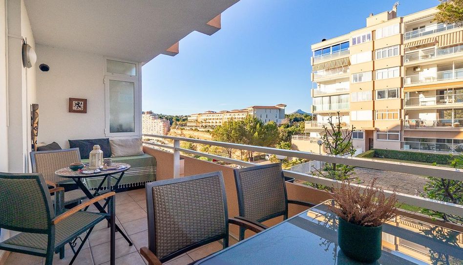 Desde el salón se accede a una agradable terraza con vistas al mar, ideal para disfrutar del clima mediterráneo.