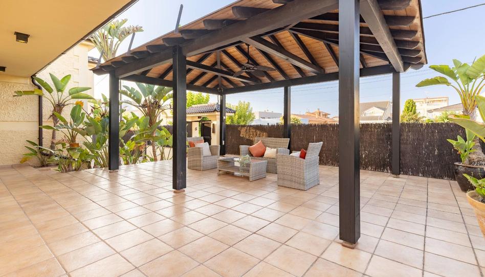 Uno de los rincones más especiales de la vivienda es su terraza cubierta con pérgola de madera y ventilador de techo integrado, un espacio perfecto para disfrutar de las noches mediterráneas. Además, la parcela cuenta con una zona habilitada para practicar bádminton al aire libre, añadiendo un componente lúdico al conjunto.