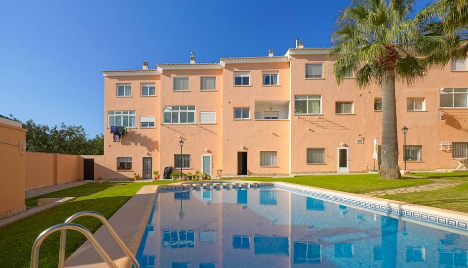 Chalet adosado de tres plantas en venta en La Xara con parking y trastero.