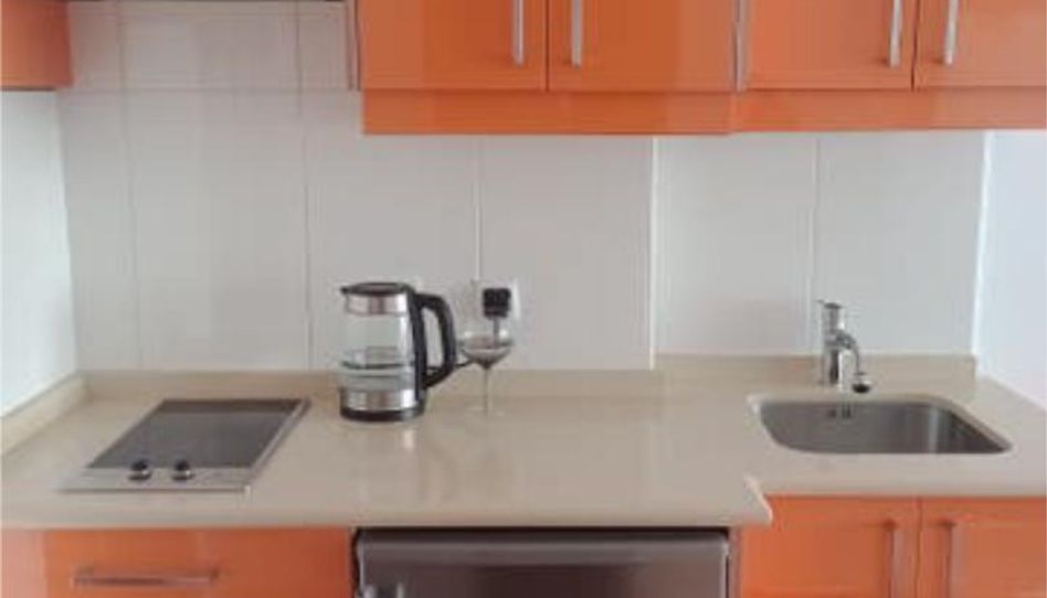 Cocina americana equipada: Incluye electrodomésticos (nevera y placa de cocina de 2 fuegos).
