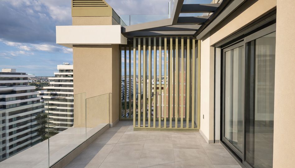 Destaca especialmente su gran terraza, con vistas completamente despejadas al Parque Forestal de Valdebebas, al Parque Princesa Leonor, al skyline de Madrid y a la Sierra, ofreciendo una sensación de amplitud y conexión con el entorno difícil de encontrar.