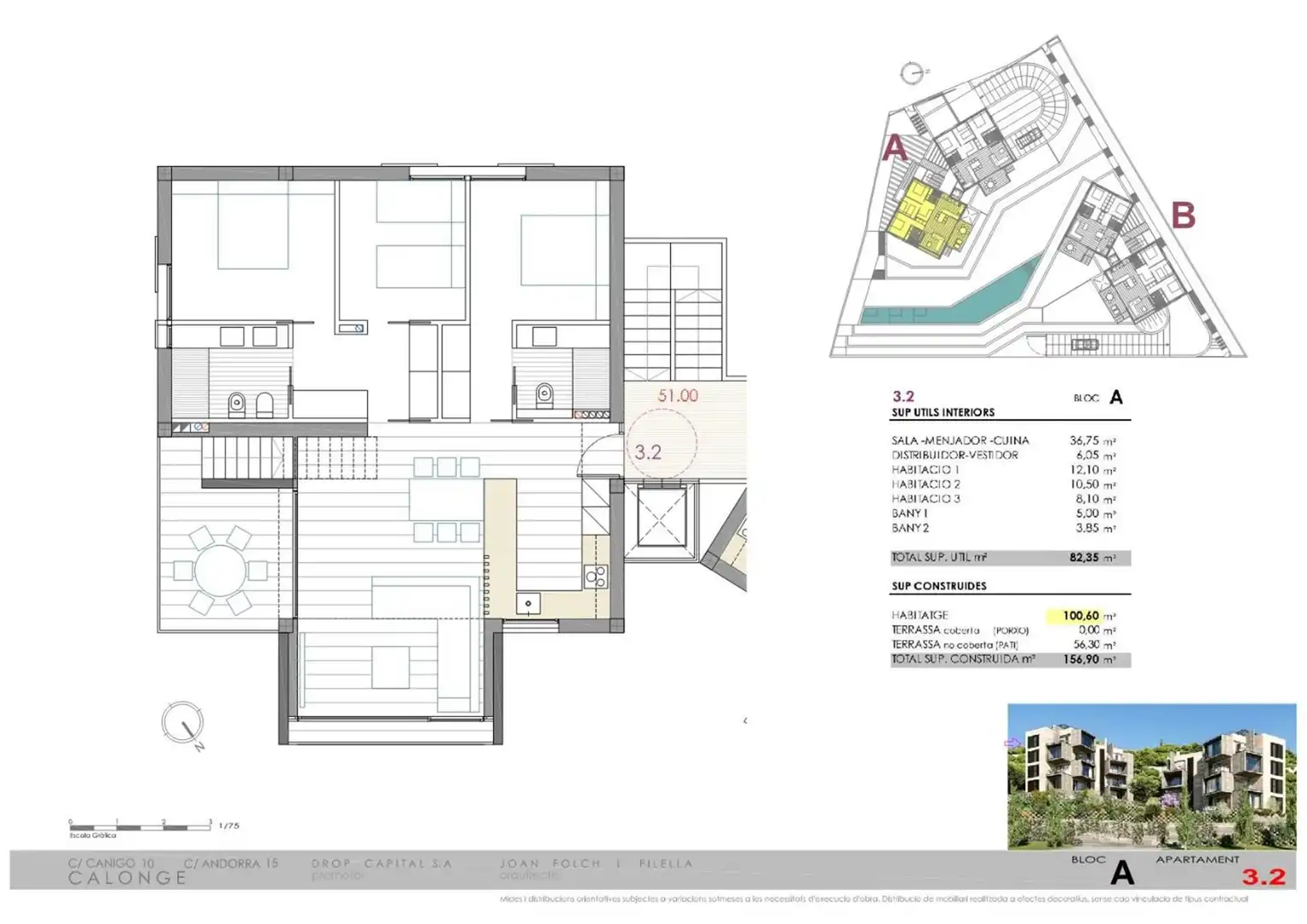 La promoció consta de la Torre A i la Torre B amb 8 apartaments cadascun, de 2 i 3 habitacions tots amb 2 banys.