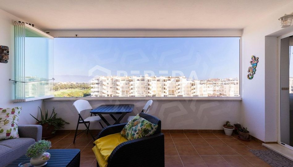 A la venta, fantástico apartamento en planta tercera con ascensor. Superficie total construida de 120 m2 y útil de 84 m2. El inmueble incluye recibidor, salón-comedor luminoso con acceso a una amplia terraza con vistas al campo de golf y al mar, cocina completamente amueblada y equipada, 2 dormitorios con armarios empotrados (uno de ellos con terraza) y 2 cuartos de baño completos (uno en-suite). Construcción de alta calidad: suelo de mármol, ventanas con doble acristalamiento, videoportero y puerta blindada. La vivienda se amueblada y comprende una plaza de garaje y un trastero en el sótano.