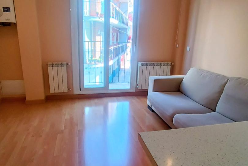 Salón con cocina americana y acceso a balcón