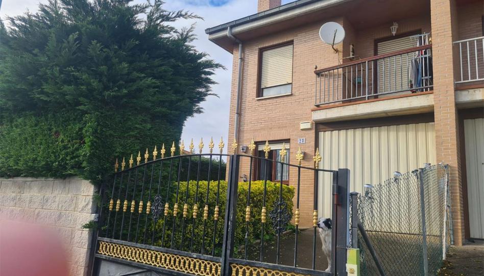 Pareado pero sin vecinos, nunca ha vivido nadie aunque tiene dueño, tiene garaje en la casa q va casi a la cocina un aseo el salón q tiene salida directa al jardín de unos 400 m cuadrados con frutales y una barbacoa, con cerramiento en pinos para su intimidad, puerta de la calle cerrada en aluminio para no mojarse ni q de el viento, calefaccion individual para cada vecino con su propio contador de gas natural.