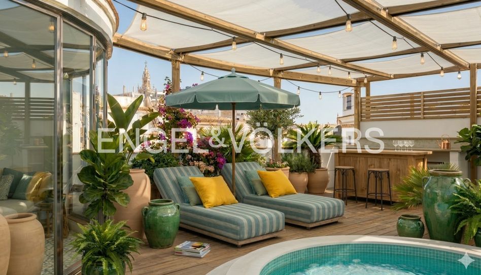 Finalmente, el Ático constituye un valor añadido significativo, ofreciendo un espacio adicional que puede ser usado como salón o habitación, con acceso a una amplia terraza privativa de 40m² provista de cocina exterior y ducha, ideal para disfrutar de veladas al aire libre bajo el clima sevillano. Desde este mirador podemos disfrutar de las vistas despejadas a la Catedral de Sevilla.