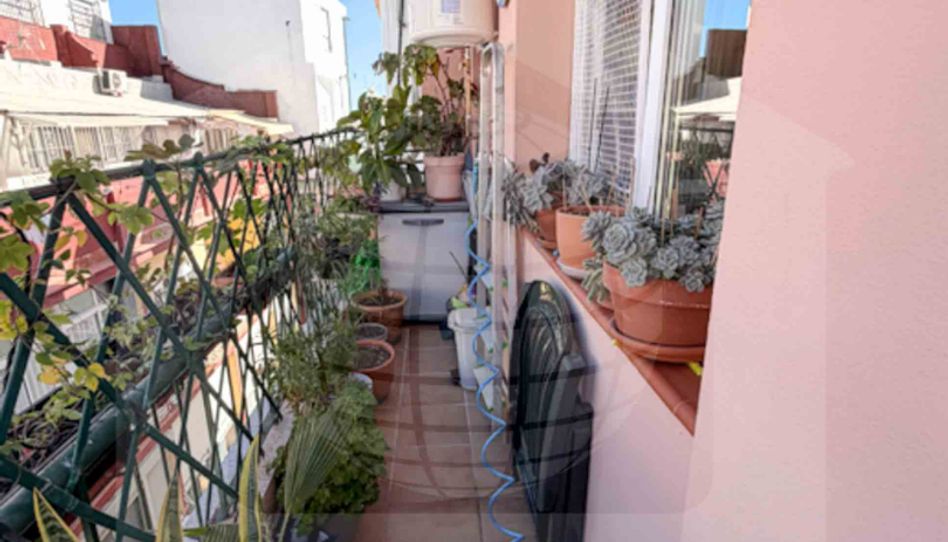 Desde el salón se accede a una pequeña terraza privada, perfecta para disfrutar del aire libre, tomar el sol o relajarse con vistas despejadas sobre los tejados del centro. Gracias a su altura, el piso recibe mucha luz natural y una agradable ventilación durante todo el día.