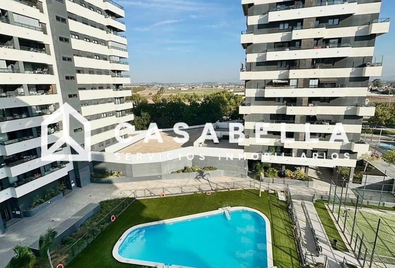 Vivienda luminosa de 99 m² que dispone de salón-comedor con salida a un balcón con vistas al residencial. Cocina independiente totalmente equipada con acceso a un lavadero. Dos habitaciones dobles con armarios empotrados. Dos baños completos (uno con ducha en suite y otro con bañera).