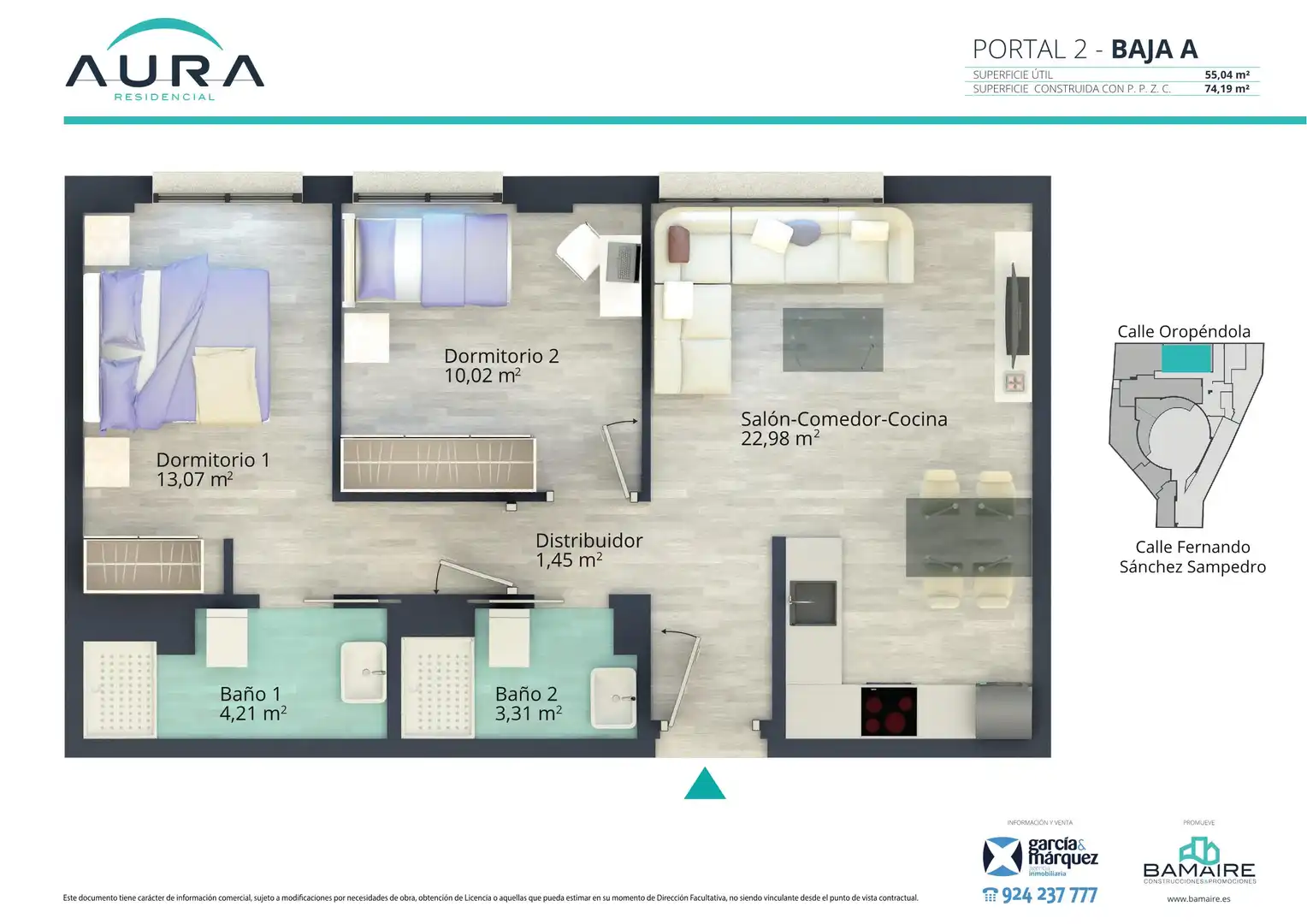 29 viviendas de 2 y 3 dormitorios, áticos, oficinas, garajes (opcionales) y trasteros (opcionales).