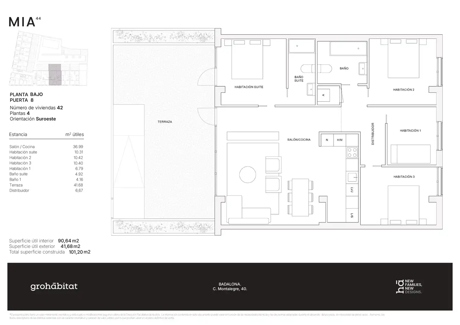 grohábitat presenta MÍA⁴⁴, una promoción de 42 viviendas de obra nueva que apuesta por la funcionalidad, la calidad constructiva y la diversidad de tipologías. Un proyecto concebido para adaptarse a distintos estilos de vida, con una arquitectura contemporánea y soluciones pensadas para el confort diario. La promoción dispone además de 46 plazas de aparcamiento opcionales, aportando un plus de practicidad y valor a las viviendas. MÍA⁴⁴ ofrece viviendas de 1 a 4 habitaciones, con distribuciones equilibradas y espacios bien proporcionados. Los hogares han sido diseñados para aprovechar al máximo cada metro cuadrado, priorizando la amplitud, la entrada de luz natural y la comodidad en el uso cotidiano. Las diferentes tipologías permiten dar respuesta tanto a quienes buscan su primera vivienda como a familias que necesitan mayor espacio, manteniendo siempre un alto nivel de funcionalidad y confort.