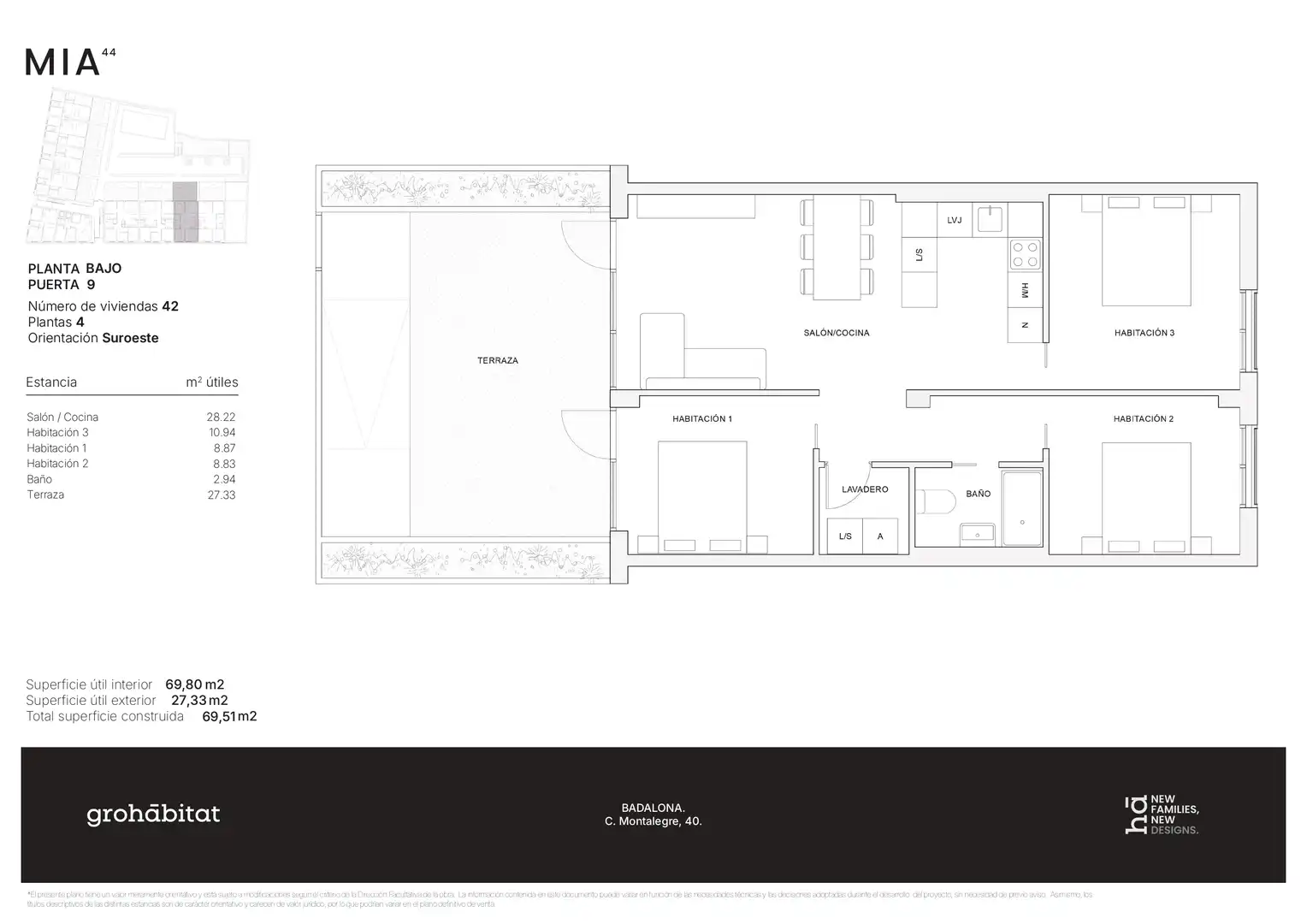 grohábitat presenta MÍA⁴⁴, una promoción de 42 viviendas de obra nueva que apuesta por la funcionalidad, la calidad constructiva y la diversidad de tipologías. Un proyecto concebido para adaptarse a distintos estilos de vida, con una arquitectura contemporánea y soluciones pensadas para el confort diario. La promoción dispone además de 46 plazas de aparcamiento opcionales, aportando un plus de practicidad y valor a las viviendas. MÍA⁴⁴ ofrece viviendas de 1 a 4 habitaciones, con distribuciones equilibradas y espacios bien proporcionados. Los hogares han sido diseñados para aprovechar al máximo cada metro cuadrado, priorizando la amplitud, la entrada de luz natural y la comodidad en el uso cotidiano. Las diferentes tipologías permiten dar respuesta tanto a quienes buscan su primera vivienda como a familias que necesitan mayor espacio, manteniendo siempre un alto nivel de funcionalidad y confort.