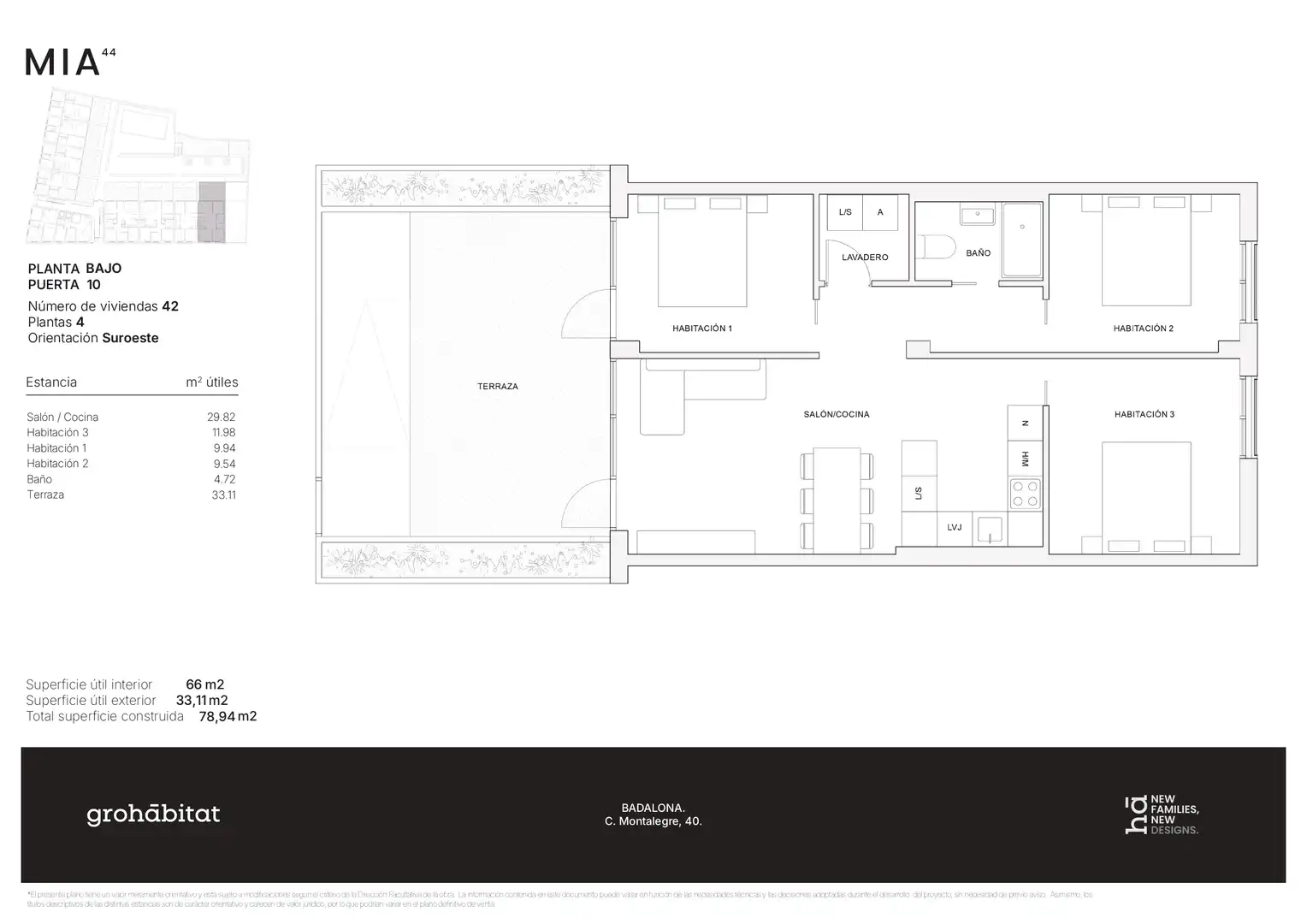 grohábitat presenta MÍA⁴⁴, una promoción de 42 viviendas de obra nueva que apuesta por la funcionalidad, la calidad constructiva y la diversidad de tipologías. Un proyecto concebido para adaptarse a distintos estilos de vida, con una arquitectura contemporánea y soluciones pensadas para el confort diario. La promoción dispone además de 46 plazas de aparcamiento opcionales, aportando un plus de practicidad y valor a las viviendas. MÍA⁴⁴ ofrece viviendas de 1 a 4 habitaciones, con distribuciones equilibradas y espacios bien proporcionados. Los hogares han sido diseñados para aprovechar al máximo cada metro cuadrado, priorizando la amplitud, la entrada de luz natural y la comodidad en el uso cotidiano. Las diferentes tipologías permiten dar respuesta tanto a quienes buscan su primera vivienda como a familias que necesitan mayor espacio, manteniendo siempre un alto nivel de funcionalidad y confort.