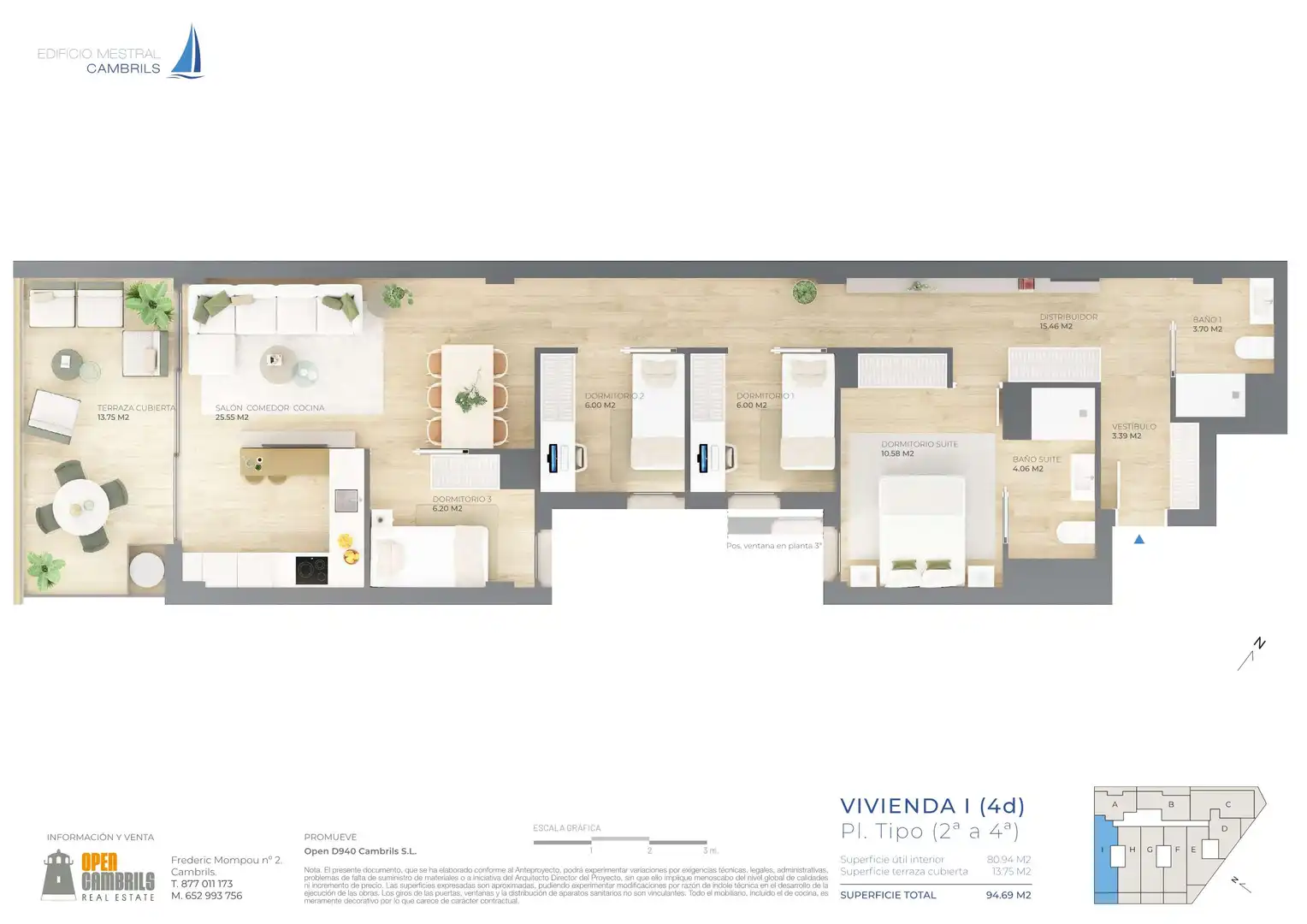 Las viviendas del EDIFICIO MESTRAL CAMBRILS disponen de plaza de garaje y trastero, y la urbanización cuenta con zona comunitaria compartida en parcela abierta con piscina, zonas verdes ajardinadas y pavimentadas de solárium con accesos directos a la misma desde las parcelas de la manzana y desde la calle.