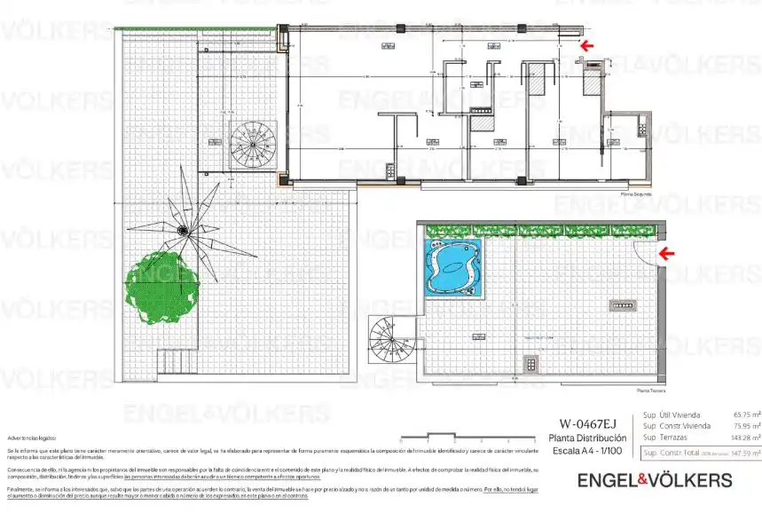 Destacan su zona comunitaria con piscina salina exterior 4.5 m por 8 m y su revestimiento exterior de gresite.