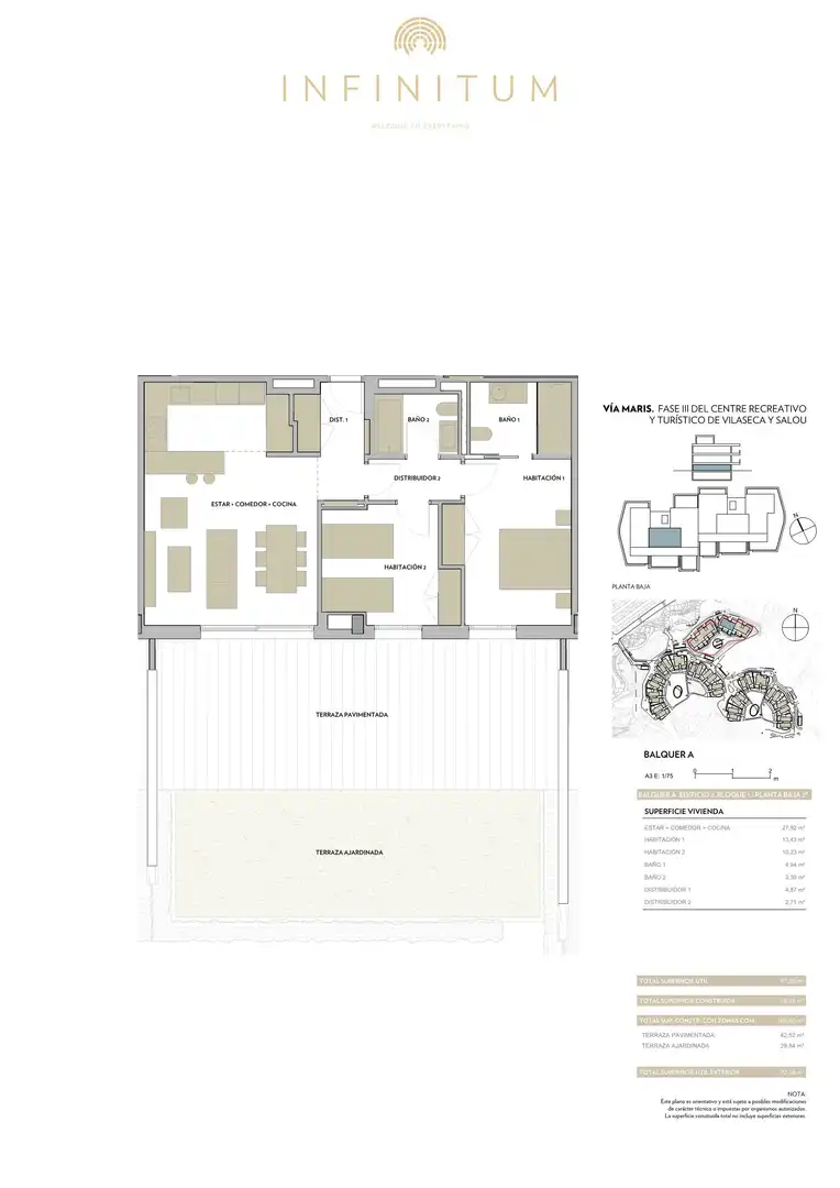 Ubicado en un paraje único, INFINITUM le permitirá disfrutar de un estilo de vida basado en la tranquilidad, el confort y la sostenibilidad, en un entorno natural junto al mar y con toda clase de servicios con tres Campos de Golf, amplia oferta gastronómica y el mejor Beach Club de Europa. Un resort privado integrado en la naturaleza y en una inmejorable localización, a 10 minutos de Tarragona y a 1 hora y 20 minutos de Barcelona.