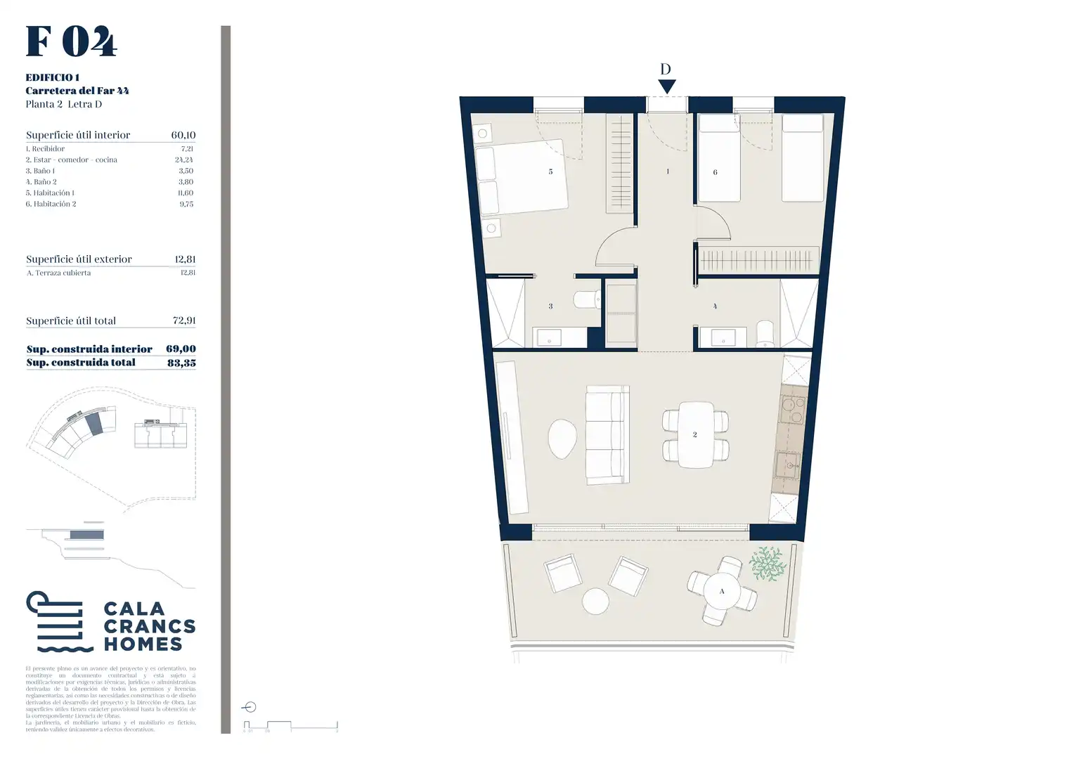Cuenta con una distribución funcional que integra cocina abierta y salón-comedor, conectando con amplios espacios exteriores según tipología. Dispone de 3 dormitorios y 2 baños, con estancias luminosas gracias a sus grandes ventanales y excelente orientación.