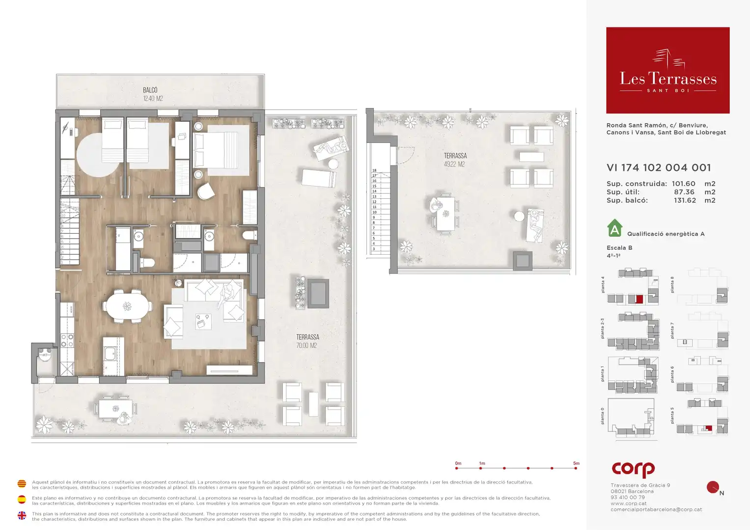 Corp Promotores- Viviendas de 1, 2, 3 y 4 habitaciones con terrazas, piscina y muy cerca del Parque de la Muntanyeta. Los interiores son muy luminosos, con amplios ventanales y distribuciones óptimas. Cuenta con una gran zona comunitaria ajardinada ideal para relajarse o divertirse en familia.
