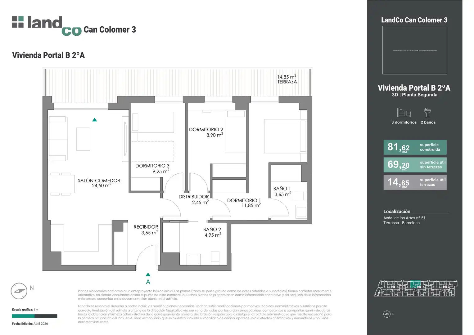 landCo Can Colomer 3 está compuesta por 105 viviendas de 1, 2 y 3 dormitorios, distribuidas en diferentes plantas y diseñadas para adaptarse a distintos estilos de vida. Hogares amplios, luminosos y funcionales, con distribuciones cuidadas que optimizan cada espacio para ofrecer el máximo confort en el día a día.