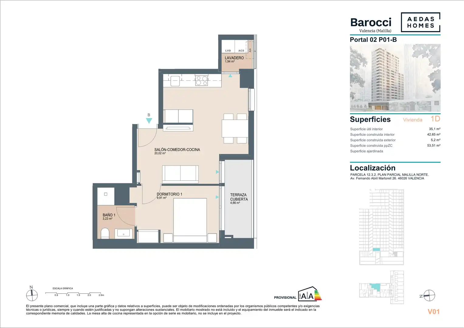 Barocci nace en Nou Malilla, en primera linea de la Avenida Fernando Martorell y frente al Nuevo Hospital La Fe, rodeada de servicios y perfectamente conectada con el centro de Valencia y la zona de Quatre Carreres y Ciudad de las Ciencias. Se compone de 71 Viviendas de 1,2,3 y 4D así como de oficinas, locales comerciales, garajes y trasteros. Dotada de servicios comunes como piscina, local social y gimnasio y excelentes calidades, harán de Barocci un exclusivo residencial.