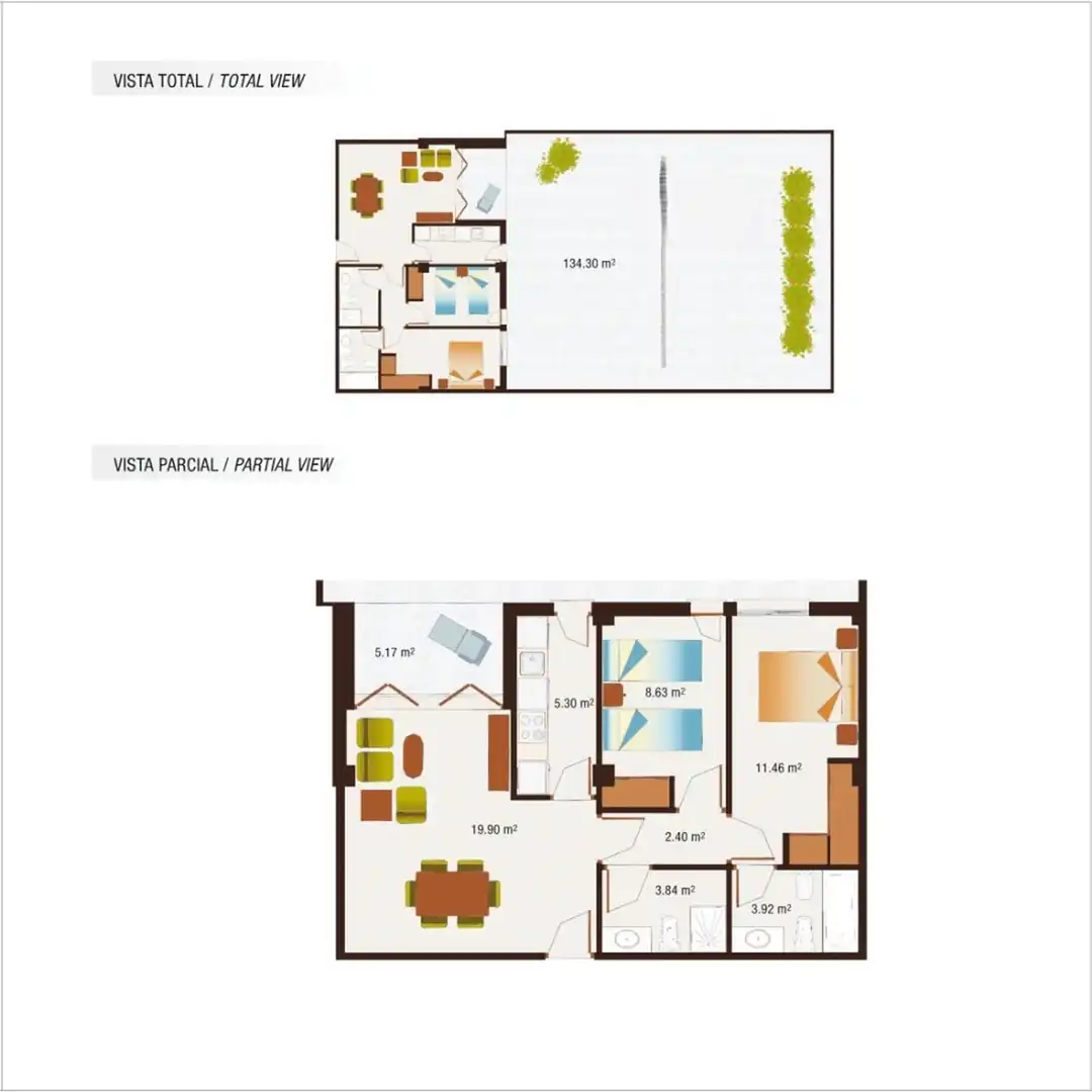 En Spa Valley tienes opciones de uno o dos dormitorios, amplias terrazas y áticos dúplex con enorme solárium con barbacoa en la planta superior. Todos los apartamentos están completamente equipados con muebles y electrodomésticos nuevos. El precio incluye también el garaje y el trastero.