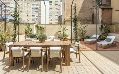 ESPECTACULAR PISO REFORMADO CON AMPLIA TERRAZA PRIVADA EN EIXAMPLE Berkshire Hathaway HomeServices Spain presenta esta magnífica vivienda situada en el prestigioso Paseo de Sant Joan, en pleno corazón del Eixample barcelonés, una de las zonas más demandadas de la ciudad. La propiedad ofrece aproximadamente 200 m² de superficie interior y una impresionante terraza privada de 100 m², un espacio excepcional para disfrutar del clima mediterráneo en un entorno urbano privilegiado. El piso destaca por su excelente luminosidad, gracias a su doble orientación, que permite la entrada de luz natural durante todo el día. La vivienda ha sido completamente renovada con un proyecto de interiorismo que respeta elementos arquitectónicos originales, como el techo catalán, combinándolos con materiales contemporáneos y acabados de alta calidad. La zona de día se compone de un amplio salón con grandes ventanales que se abren a la terraza, creando una conexión fluida entre interior y exterior. La cocina abierta al comedor, totalmente equipada, ofrece un espacio funcional y elegante, perfecto tanto para el día a día como para reuniones sociales. La zona de descanso dispone de tres dormitorios exteriores, todos ellos con baño en suite y armarios empotrados diseñados a medida, proporcionando confort y privacidad. Entre sus prestaciones destacan suelos de madera de roble natural, calefacción por suelo radiante y sistema de climatización independiente por estancias, garantizando el máximo bienestar durante todo el año. La terraza, amplia y soleada, se convierte en un auténtico refugio urbano, ideal para relajarse, comer al aire libre o disfrutar de momentos especiales en el centro de Barcelona. Para más información o concertar una visita, no dude en contactar con Berkshire Hathaway HomeServices Spain, especialistas en propiedades exclusivas en Barcelona.
