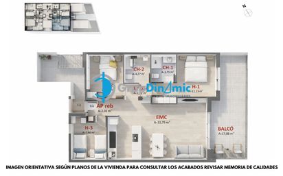 Disponemos de esta vivienda 1º3º. Su superficie es de 81,21m2 y una terraza de 17,4m2. Se caracteriza por disponer de 3 habitaciones y 2 baños completos, uno de ellos en suitte.