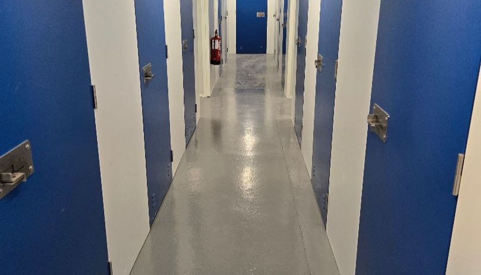 -Puertas metálicas de trasteros de que abren hacia fuera, optimizando al máximo la capacidad de almacenaje.
