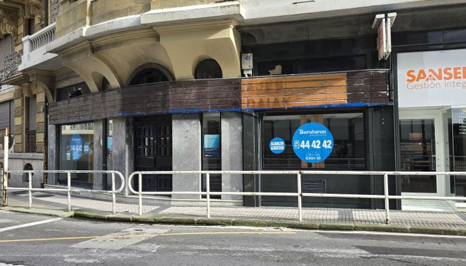 Frente al Hotel Londres, situado en la fachada de la calle Zubieta, por donde tiene su acceso, en el edificio de esta calle que hace esquina con el número uno de plaza Zaragoza.