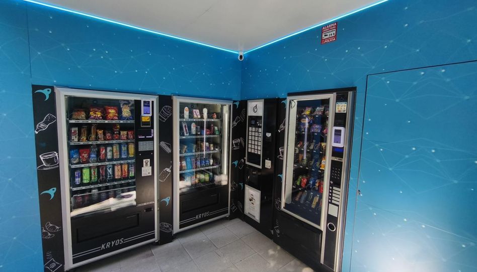 • 3 máquinas expendedoras nuevas marca KRYOS: snacks, bebidas, productos de conveniencia y parafarmacia
