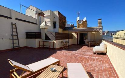 DISPONIBLE A PARTIR DEL 01/08/25 ALQUILER DE TEMPORADA (hasta 11 meses) Ático luminoso con espectacular terraza en Ciutat Vella Disfruta de este acogedor y luminoso ático con una amplia terraza de estilo tradicional catalán y vistas impresionantes de Barcelona. Ubicado estratégicamente entre los barrios del Born y la Barceloneta, este apartamento está a solo 1 minuto a pie de la parada de metro Barceloneta y la estación de Francia (tren), a 2 minutos de la Basílica de Santa María del Mar y a 12 minutos de la playa. Características del apartamento: Superficie: 45 m2 interiores y una terraza de 80 m2. Distribución: El ático cuenta con 1 dormitorio doble, un baño completo, y un espacio abierto que combina cocina, comedor y salón con un sofá cama para visitas puntuales. Equipamiento: Completamente reformado y amueblado con diseño de un arquitecto y una interiorista. Incluye todo lo necesario para una estancia cómoda: mobiliario, sábanas, toallas, utensilios de cocina, lavadora, nevera, horno, fogones, tostadora, secador, elementos de limpieza, aire acondicionado, entre otros. Terraza: 80 m2 con baldosas tradicionales catalanas, equipada con 2 mesas (una de ellas para 6 personas), 6 sillas, un sofá, toldo, iluminación y 2 tumbonas para disfrutar del clima soleado de Barcelona. Orientación: Este, proporcionando abundante luz natural durante todo el día. Ventilación: Todas las estancias tienen ventanas exteriores, lo que garantiza una excelente ventilación y luminosidad. Detalles adicionales: Ubicación: 5ª planta (ático) en edificio sin ascensor. Capacidad: Ideal para 2 personas, con posibilidad de alojar hasta 4 personas utilizando el sofá cama. Mascotas: Aceptadas. Resumen: 135 m2 construidos, 120 m2 útiles. 1 habitación. 1 baño. Terraza de uso exclusivo. Edificio en buen estado, sin ascensor. Totalmente amueblado y cocina equipada. ¡Una oportunidad única para vivir en un entorno lleno de historia y cerca del mar, con todas las comodidades que necesitas!