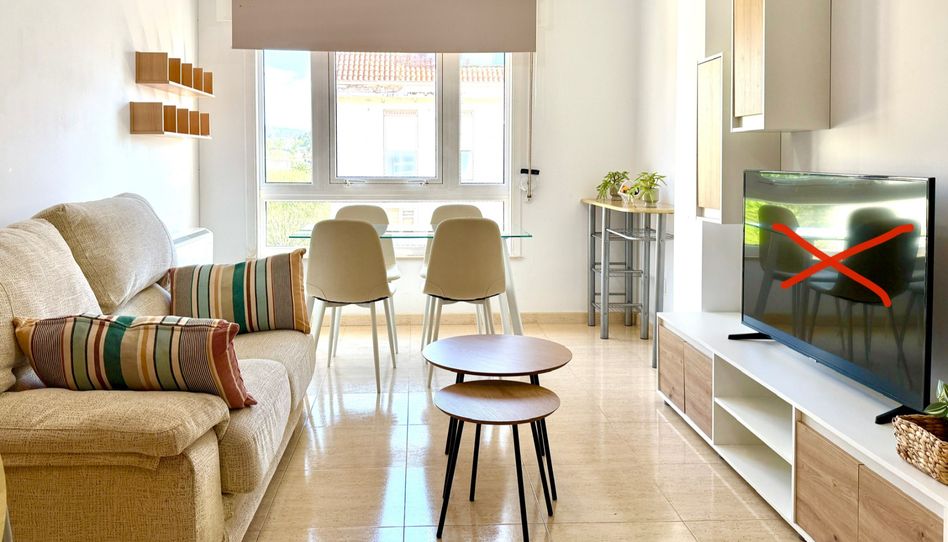 En el amplio salón cocina de tipo americano tenemos todos los elementos necesarios para cocinar, horno, microondas, vitrocerámica, campana extractora y nevera, con una mesa auxiliar para desayunos o pequeños almuerzos, que es plegable para que no ocupe espacio cuando no se usa. En el salón disponemos de una mesa de comedor y sillas para cuatro comensales, con una mesa auxiliar (archivo, bebidas, portátil.. . ) y mesa de TV (TV no incluida) y almacenaje de salón, que con el cómodo sofá hacen un espacio amplio y muy acogedor.
