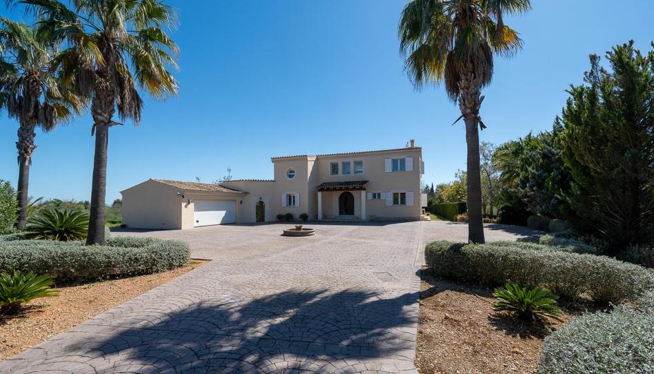 Garaje para dos vehículos grandes y espaciosa terraza de entrada con jardín y palmeras completan este majestuoso chalet ubicado en una de las mejores zonas de Binissalem, a 500 metros de la posesión de Biniagual.
