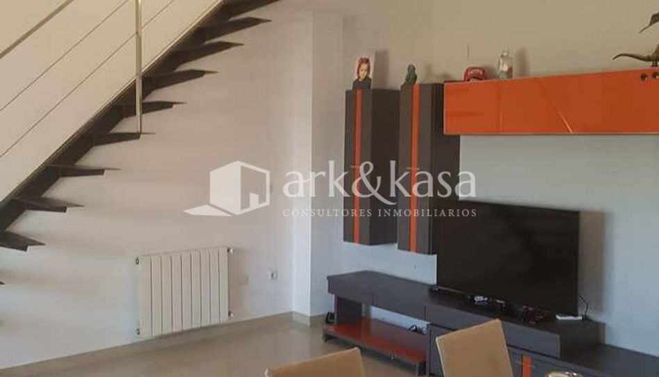 Bonita casa en alquiler de 120m², con 3 dormitorios. Dispone de 2 baños y un aseo, distribuidos en 2 plantas de estilo moderno construidas en 2006. Cuenta con 1 salón, armarios empotrados, cocina independiente amueblada, calefacción centralizada de gas natural y agua caliente también de gas natural. Además, tiene aire acondicionado, terraza de 15m² con orientación oeste y se encuentra en una zona céntrica y residencial con vistas al pueblo. El techo es de escayola, las puertas interiores son de roble, los revestimientos de las paredes son lisos y los suelos son de gres porcelánico.