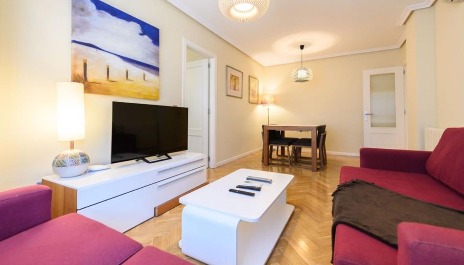 • Amplio salón con dos sofás, TV, mesa de comedor y grandes ventanas que aportan abundante luz natural. Dispone de aire acondicionado y calefacción.