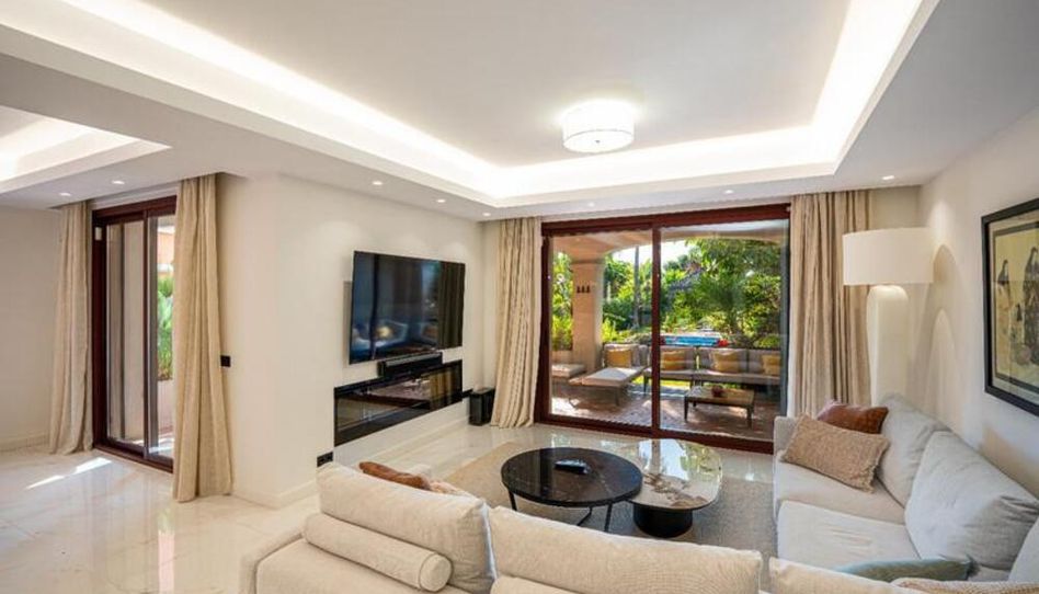 Descubra esta casa adosada completamente renovada, que cuenta con 5 dormitorios y 4 baños distribuidos en tres luminosas y amplias plantas, ubicada en la codiciada zona de Nueva Andalucía. A tan solo unos minutos a pie de las playas y de Puerto Banús, esta vivienda moderna ofrece espacios de concepto abierto, jardín privado con piscina y la tranquilidad de residir en una comunidad cerrada con seguridad las 24 horas. El garaje privado con capacidad para dos vehículos aporta comodidad a la vida diaria.