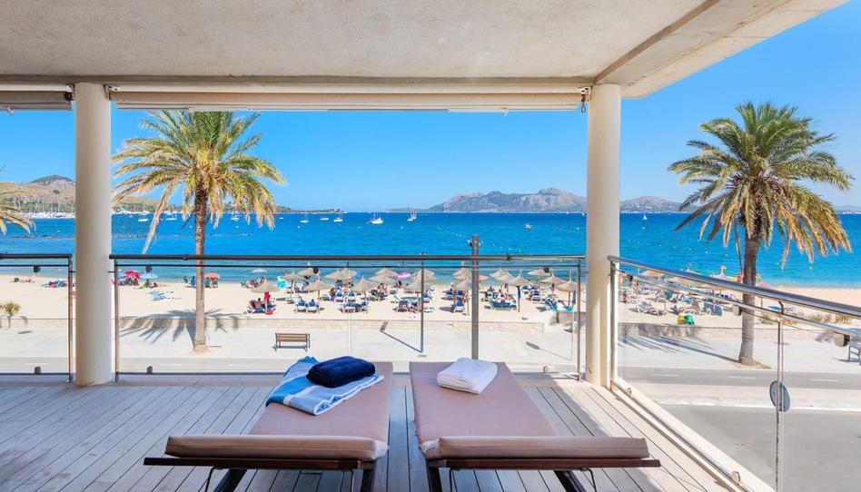 Exclusivo Ático en Primera Línea de Puerto Pollensa con Acceso Directo a la PlayaUbicado en la zona más privilegiada de Puerto Pollensa, este espectacular ático de 180 $m^2$ habitables representa una oportunidad única de vivir el Mediterráneo en su máxima expresión. La propiedad destaca por un diseño contemporáneo y cálido, donde los suelos de madera noble y los acabados en piedra natural se combinan para crear una atmósfera de lujo relajado. Su característica más exclusiva es, sin duda, el acceso directo y privado a la playa, un detalle de distinción que garantiza una conexión inmediata con el mar y la arena.