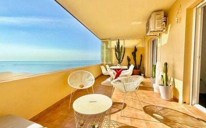 Descubre este impresionante piso en alquiler, ideal para disfrutar de la costa. Cuenta con 2 dormitorios y 2 baños, junto a una cocina independiente y un amplio salón que se abre hacia una maravillosa terraza de 20 m2, perfecta para relajarte al amanecer o compartir veladas estrelladas con amigos mientras saboreas un vino. Su orientación sureste ofrece vistas espectaculares al mar; además, la playa está situada a solo unos pasos de distancia. La propiedad se encuentra cerca de la estación del tren de cercanías y goza de fácil acceso a la autovía. Ubicada dentro de una urbanización cerrada rodeada por jardines bien cuidados y piscinas comunitarias, esta zona es especialmente tranquila.y serena. Se alquila desde SEPTIEMBRE DE 2026 hasta el 31 DE JULIO DE 2027 bajo condiciones específicas que requieren demostrar ingresos económicos.