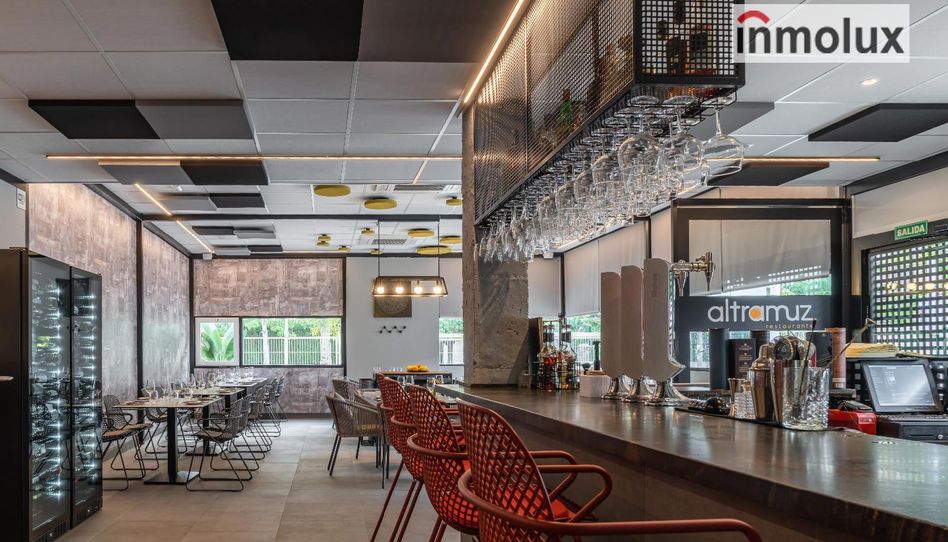 110 m² de sala interior, amplia y luminosa, con mobiliario de calidad y diseño y 2 vitrinas climatizadas para bebidas.