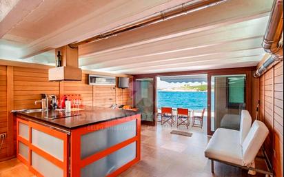 Vivir frente al mar en un lugar único e irrepetible, situado directamente sobre el muelle de Cala Molí, en la exclusiva y residencial Cala Macaret. Este apartamento en planta baja dispone de licencia turística y se encuentra a solo unos metros del agua. La propiedad ofrece un interior muy cuidado, práctico y de concepto abierto. Ha sido reformado con materiales especialmente seleccionados para garantizar un perfecto confort junto al mar; de hecho, las paredes interiores están revestidas con madera tratada en autoclave para una máxima durabilidad. El espacio interior se organiza en una amplia estancia principal que integra la zona de salón y una cocina abierta con una gran barra cuadrada y electrodomésticos intregrados que actúa como separación natural entre ambos ambientes. En la parte posterior se encuentra un dormitorio doble y un baño completo con ducha de obra. La luminosa zona de día conecta directamente con la terraza exterior, con toldo, situada sobre el muelle, creando una transición perfecta entre interior y exterior y ofreciendo un espacio donde comer y/o relajarse a solo unos pasos del agua. Además de su ubicación privilegiada, la propiedad cuenta con licencia turística, lo que la convierte en una excelente oportunidad de inversión para el alquiler vacacional, ideal para quienes desean disfrutar de un rincón único frente al mar en Menorca. El apartamento dispone de aire acondicionado frío/calor y carpintería exterior de PVC con doble acristalamiento, lo que lo convierte también en un refugio perfecto para los meses de invierno, asegurando confort y tranquilidad durante todo el año. Un apartamento en excelente estado y con una ubicación realmente privilegiada, prácticamente sobre el agua. #ref:7270