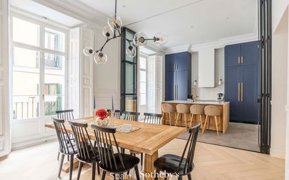 Excepcional piso de lujo completamente reformado situado en una tranquila calle del emblemático Barrio de las Letras, dentro del distrito de Cortes, una de las zonas más culturales y atractivas del centro de Madrid. Ubicado en la primera planta de un elegante edificio clásico construido a finales del siglo XIX, la vivienda destaca por su arquitectura señorial, sus techos de más de 3,5 metros de altura y su magnífica luminosidad gracias a sus tres balcones con orientación sur. La propiedad cuenta con aproximadamente 243 m² construidos y ha sido objeto de una reforma integral realizada con materiales de alta calidad y una cuidada atención al detalle, respetando elementos clásicos como molduras y proporciones originales e incorporando soluciones contemporáneas de confort y funcionalidad. El acceso se realiza a través de un elegante hall que conduce a un amplio salón-comedor con cocina abierta de diseño, completamente equipada con electrodomésticos de alta gama y con posibilidad de independizarse mediante cerramientos de cristal. La distribución separa claramente la zona social de la zona privada. A través de un luminoso pasillo se accede a la zona de descanso, compuesta por cuatro dormitorios y cuatro baños completos. El dormitorio principal dispone de vestidor y un elegante baño en suite con bañera y ducha. Dos de los dormitorios secundarios tienen acceso directo a una agradable terraza de aproximadamente 20 m² con cerramiento de cristal abatible que permite disfrutarla durante todo el año. La vivienda se completa con despacho independiente, abundante almacenamiento, carpinterías con doble acristalamiento, suelos de tarima y puerta de seguridad.