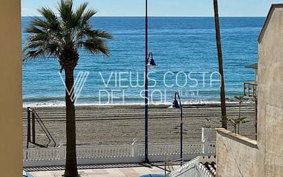 Amplio piso Junto al Paseo Marítimo de Torrox-Costa, El Morche, Edificio en 1a Linea de Playa con salida directa al Paseo Marítimo y Playa, en una de las mejores zonas de El Morche, Recinto cerrado y privado. Consta de 2 amplios dormitorios, 1 baño completo en suite y 1 Aseo, salón comedor con salida directa a la terraza con vistas directas al mar y Orientacion SUR, cocina americana con pasa platos, terraza muy soleada, cocina completamente equipada, armarios empotrados etc, . Propiedad con orientacion Sur, muy luminosa. La vivienda se entrega parcialmente amueblada. La propiedad dispone de Plaza de Garaje y Trastero incluidos en el precio se encuentra a tan solo 50 metros del paseo marítimo de la localidad de El Morche, Torrox. La vivienda esta reformada, y dispone de climatización en todas las dependencias. La vivienda se encuentra, en muy buen estado.