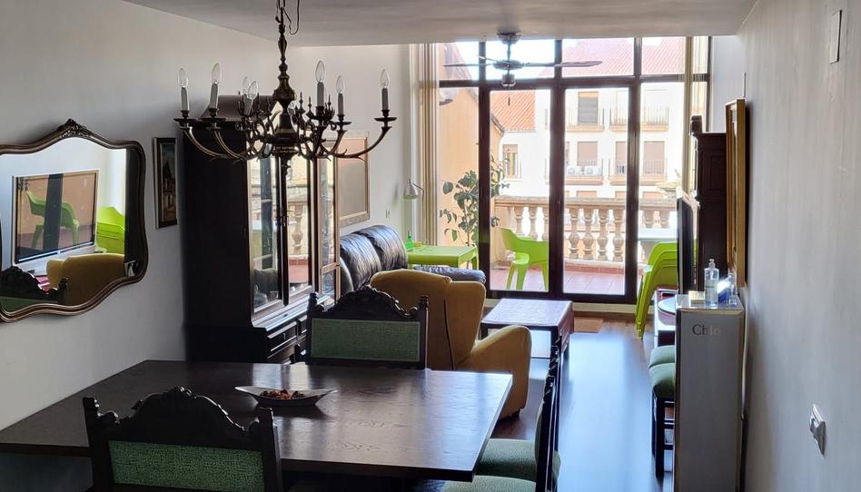 - Planta principal: salón con amplia cristalera y salida a una espectacular terraza orientada hacia la Plaza Mayor de Plasencia, cocina totalmente amueblada y equipada, dos dormitorios (uno de ellos utilizado como vestidor) y dos baños completos.