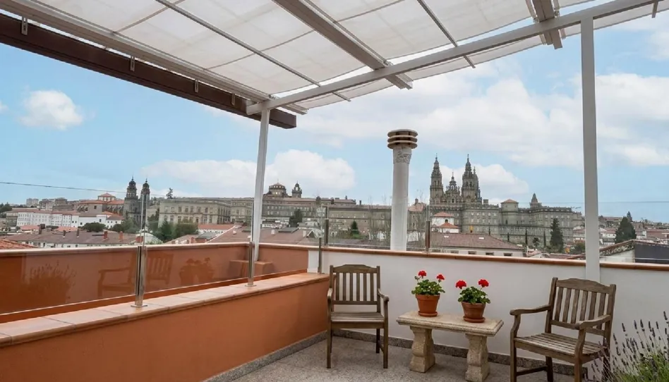 - Vivienda exclusiva en la tercera planta de 128 m², con terraza privada y vistas panorámicas a la Catedral de Santiago, la zona monumental y el Parque de Galeras.