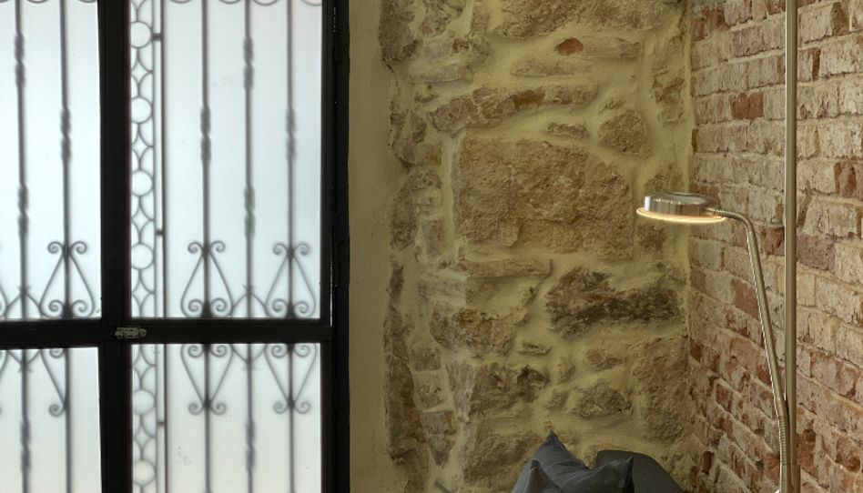 Los techos altos con ladrillo original en forma de arco aportan carácter y sofisticación, respetando la esencia del edificio y creando una atmósfera cálida y única. El suelo de parqué recorre toda la estancia, reforzando la sensación de confort, y el baño completo con plato de ducha completa un conjunto moderno y acogedor.