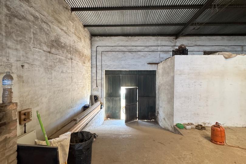 La nave está construida de ladrillos y está levantada de la cota cero de la calle un metro para evitar cualquier tipo de inundación. La construcción tiene tiene 6 metros de altura y dispone de amplio portón de acceso, cuarto interior tipo bunker antirrobo ideal para almacenar las cosas de más valor. Dispone de pozo de agua motorizado a parte del suministro de agua corriente, contador e instalación eléctrica trifásica a 380 válida para cualquier tipo de actividad industrial e instalación de aire comprimido con distribución por toda la superficie. La nave se distribuye en una primera parte muy amplia, patio interior techado a dos aguas con bajante de desagüe, baño y nave trasera. Todo es diáfano sin pilares, lo que la hace muy cómoda de trabajar. También dispone de chimenea. Se entregaría totalmente vacía.