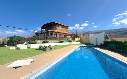 Villa de Lujo en el corazón de Tijoco Se ha construido una vivienda unifamiliar que consta de los siguientes elementos: - Planta Sótano: Destinada a garaje, con una superficie construida de 64,65 m². El sótano se distribuye en: - Garaje - Baño - Planta Baja: Destinada a vivienda, con una superficie construida de 215,48 m². La planta baja se distribuye en: - Estar-comedor-cocina - Dos baños - Galería - Aseo - Despensa - Pasillo - Cuatro dormitorios - Distribuidor - Armario - Trastero - Escalera - Terraza cubierta - Planta Alta: Destinada igualmente a vivienda, con una superficie construida de 68,66 m². La planta alta se distribuye en: - Baño - Estar-comedor-cocina-dormitorio - Apartamento Aislado: De una sola planta (planta baja), con una superficie total construida de 51,67 m². El apartamento se distribuye en: - Baño - Estar-comedor-cocina-dormitorio Superficie Construida Total: 396,45 m². Cuenta con Licencia de Vivienda Vacacional Las construcciones existentes están totalmente legalizadas. Este inmueble dispone de un terreno rústico para expansión, tanto deportiva como opcinal. Esta vivienda unifamiliar ofrece una gran variedad de espacios y una distribución funcional para satisfacer las necesidades de sus ocupantes.