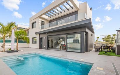 Nos complace presentarles esta fabulosa villa independiente en Algorfa. Ubicada en una zona privilegiada, a un paseo de una zona comercial, esta propiedad ofrece todo lo necesario para un estilo de vida excepcional en España. Se accede a la propiedad a través de una puerta automatizada para aparcar el coche en la parcela. Justo enfrente de la casa hay una gran piscina para disfrutar del clima cálido durante todo el año. Al entrar por la puerta principal, el amplio salón está inundado de abundante luz natural. A la izquierda se encuentra la cocina abierta, totalmente equipada y con acabados de alta calidad, perfecta para recibir a sus invitados. En la misma zona se encuentra el lavadero con la lavadora, la caldera y la secadora. En la misma planta, también hay un aseo. Al subir a la primera planta se accede al dormitorio principal y al dormitorio de invitados, ambos amplios y con baños en suite. La misma planta cuenta con un amplio balcón con vistas a la piscina. El sótano se ha transformado en una segunda sala de estar, con un dormitorio y una habitación que sirve como despacho. Además, hay un aseo con ducha y trasteros. La villa está completamente amueblada con una decoración moderna y cuenta con aire acondicionado central para mayor comodidad durante todo el año. Salga a disfrutar de su piscina privada, perfecta para relajarse, recibir amigos bajo el sol o simplemente disfrutar de una buena comida junto a la zona de barbacoa. ¡Esta propiedad es IMPERDIBLE! ¡Se recomienda visitarla con anticipación! Algorfa es conocida por su entorno tranquilo, sus hermosos paisajes y su acogedora comunidad. Es un destino popular para quienes buscan un estilo de vida tranquilo con fácil acceso a campos de golf, tiendas y restaurantes.