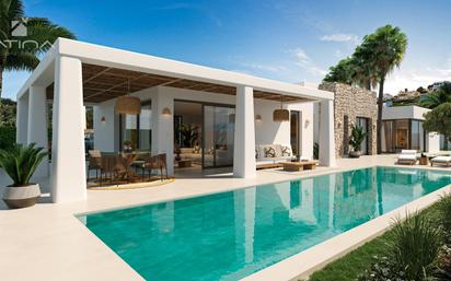 Villa de ensueño en la exclusiva Lomas del Rey, Jávea, en la encantadora Costa Blanca Norte. Próxima a iniciar su construcción, esta villa de estilo mediterráneo respira una elegancia atemporal en un entorno sereno. Con una fachada blanca y esquinas redondeadas, realzada por la belleza natural de las piedras de Montgó cortadas a mano con reflejos rojos. Su diseño mediterráneo invita a la contemplación y al disfrute de cada espacio, donde el microcemento en los baños y en todo el suelo interior, complementado con ventanas de aluminio de doble acristalamiento de color oxidado, se unen para crear una atmósfera de lujo y confort. Las habitaciones cuentan con persianas eléctricas exteriores y los baños con grifería negra, aportando un toque moderno y elegante. La villa cuenta con un amplio salón-comedor abierto a una cocina totalmente equipada, que ofrece acceso directo a la piscina exterior y a sus soleadas terrazas orientadas al sur. También dispone de un cuarto de lavado adyacente y un aseo para invitados. En el área de descanso, encontrarás tres dormitorios dobles, cada uno con su propio baño en suite. La casa estará equipada con calefacción por suelo radiante y aire acondicionado por conductos. Tendrá dos plazas de aparcamiento bajo un cobertizo, así como un espacio de almacenamiento de 37 m2 previsto bajo la casa. En el exterior, la piscina de 42 m2, con una zona poco profunda llamada playa, es ideal para relajarse y disfrutar del sol. Está rodeada de 155 m2 de terraza, incluyendo una parte cubierta bajo una hermosa pérgola, perfecta para sus cenas familiares durante todo el año y para disfrutar del clima suave y soleado que Javea tiene para ofrecer. La villa ofrece vistas impresionantes de las montañas verdes circundantes y de la montaña Montgó, símbolo de Javea. La ubicación de esta villa es excepcional: a solo 5 minutos de una escuela internacional en construcción (prevista para diciembre de 2024), a 6 minutos en coche de la playa de arena fina del Arenal y cerca de varios restaurantes. Lomas del Rey es una nueva zona residencial que ofrece comodidades modernas como alcantarillado, cables enterrados y casas nuevas. Además, la montaña adyacente a la villa forma parte del Parque Natural de la Granadella, un lugar perfecto para paseos con vistas extraordinarias al mar. ATINA • Luxury Real Estate | Inmobiliaria en Javea SPAIN Disponemos de VILLAS de LUJO con espectaculares Vistas , Chalets, Adosados, Casas, Apartamentos en Primera línea de Playa, JAVEA • Costa Blanca • .