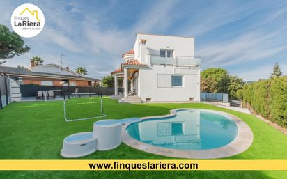 Finques La Riera Os presentamos esta magnífica casa a cuatro vientos, situada en un entorno tranquilo con vistas despejadas, ideal para familias que buscan espacio, luz y confort. En la planta baja encontramos un amplio salón-comedor con chimenea y salida directa al jardín, perfecta para disfrutar de momentos en familia, una gran cocina office, muy funcional, con acceso directo a un porche y jardín, una habitación doble, un baño completo y un despacho. En la primera planta hay tres habitaciones, dos de ellas dobles muy espaciosas (una con vestidor) con salida a una terracita y un baño completo que da servicio a la planta. En planta sótano dispone de un amplio aparcamiento para dos o tres coches y motos, un baño completo y una zona de trastero. La vivienda cuenta con calefacción, bombas aire frío y caliente, carpintería exterior de aluminio y una excelente orientación que garantiza luz natural durante todo el día. En el exterior destaca un jardín totalmente llano, con piscina privada y una agradable zona con pérgola, ideal para barbacoas y encuentros al aire libre. Una propiedad única que combina comodidad, privacidad y calidad de vida. ¡No deje escapar esta oportunidad! Gastos de compra no incluidos en el precio. Referencia T-96 de Finques La Riera.