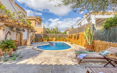 En la tranquila zona de Son Ferrer a tan solo 5 minutos del exclusivo puerto deportivo PORT ADRIANO en Calvià, con un fantástico pulmón verde que rodea a las viviendas, encontramos esta luminosa doble vivienda unifamiliar con piscina privada; acogedores porches de madera y terraza solárium donde disfrutar de tranquilidad y privacidad. Decimos doble vivienda unifamiliar porque es una gran vivienda dividida en dos pero unida así que se puede usar toda la construcción como una única vivienda o como 2 viviendas independientes y vivir en ellas 2 familias por separado. Es una construcción formada por una planta baja y una planta piso. En la actualidad hay 5 habitaciones dobles, 1 cocina, 1 baño y varios espacios de salón-comedor. La planta baja dispone de un espacio muy amplio donde encontramos el salón con chimenea y comedor (se podría diseñar la cocina en este espacio); comedor y acceso a la terraza; 2 habitaciones prácticamente triples (posibilidad de hacer otra habitación) y diseñar también un baño. La planta 1ª tiene un salón comedor con chimenea con acceso a la terraza; cocina completamente amueblada y equipada también con salida a la terraza; 3 habitaciones dobles exteriores y un baño completo. Vivienda con balaustrada de marés y vigas vistas que proporcionan mucho encanto a la vivienda. Cerramientos de aluminio y doble acristalamiento. Persianas mallorquinas. Suelos de gres. Climatización por chimeneas. Espacio de lavandería-trastero. Barbacoa de obra en el exterior. Zona de aparcamiento. Fantástica vivienda donde disfrutar con toda la familia, con la gran cualidad de que pueden vivir dos familias unidas per al mismo tiempo separadas; perfecta para familias con abuelos, padres, nietos y disfrutar de todos sus espacios y la tranquilidad de la zona. Rodeada de playas y calas de aguas cristalinas a tan solo 5 minutos de El Toro, de Calvià, Santa Ponça, y fácil conexión a la vía de cintura para llegar al centro de la ciudad de Palma. ¡No dude en visitarla!